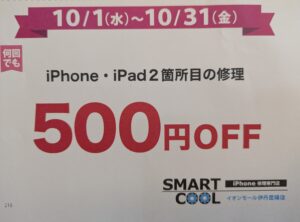 iPhone、iPad全機種 全修理の二箇所目修理が500円OFF🌟